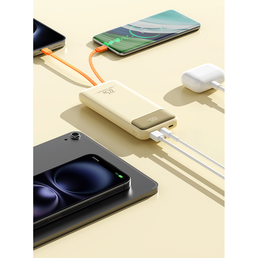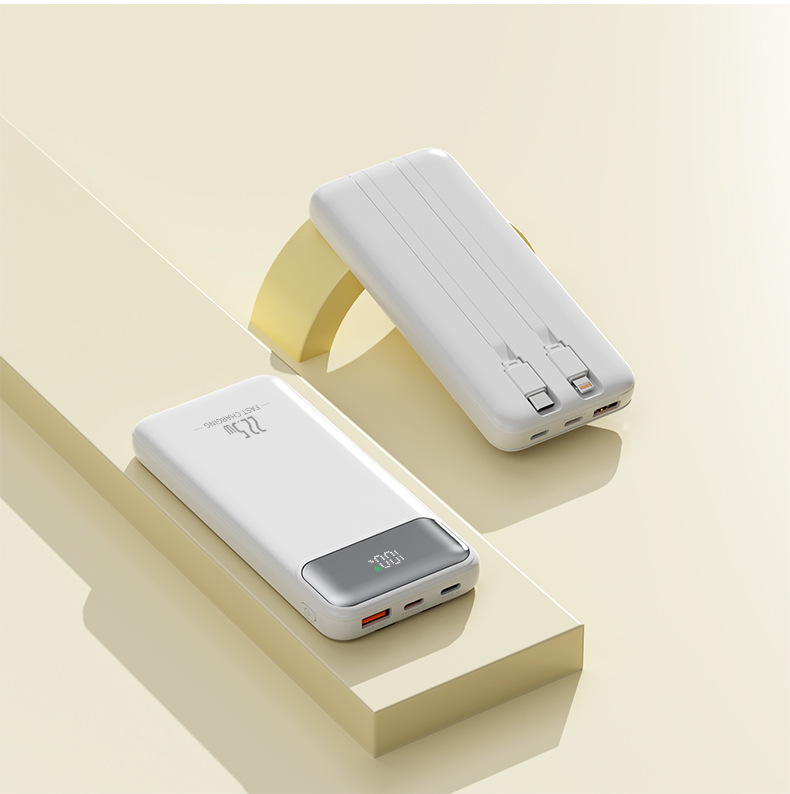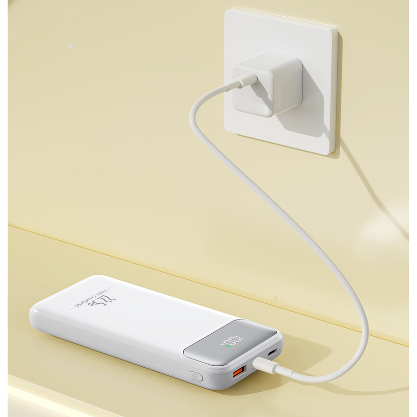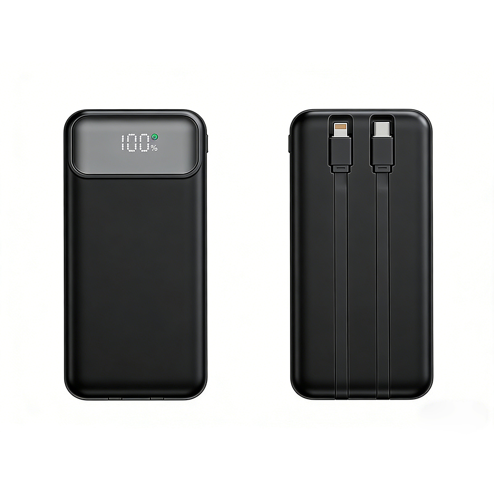 Engineered for on-the-go convenience, this 10000mAh power bank features a sleek white durable plastic casing that fits easily into bags or pockets, with built-in USB-C and Lightning cables eliminating extra cords—compatible with most smartphones, tablets and Bluetooth earbuds. Its stable fast-charging technology powers devices efficiently without battery damage, while the integrated digital display shows real-time power levels to avoid unexpected shutdowns. Lightweight, compact and reliable, this all-in-one charger is the perfect companion for travel, office use and outdoor activities, balancing portability and performance to keep you connected anytime, anywhere.