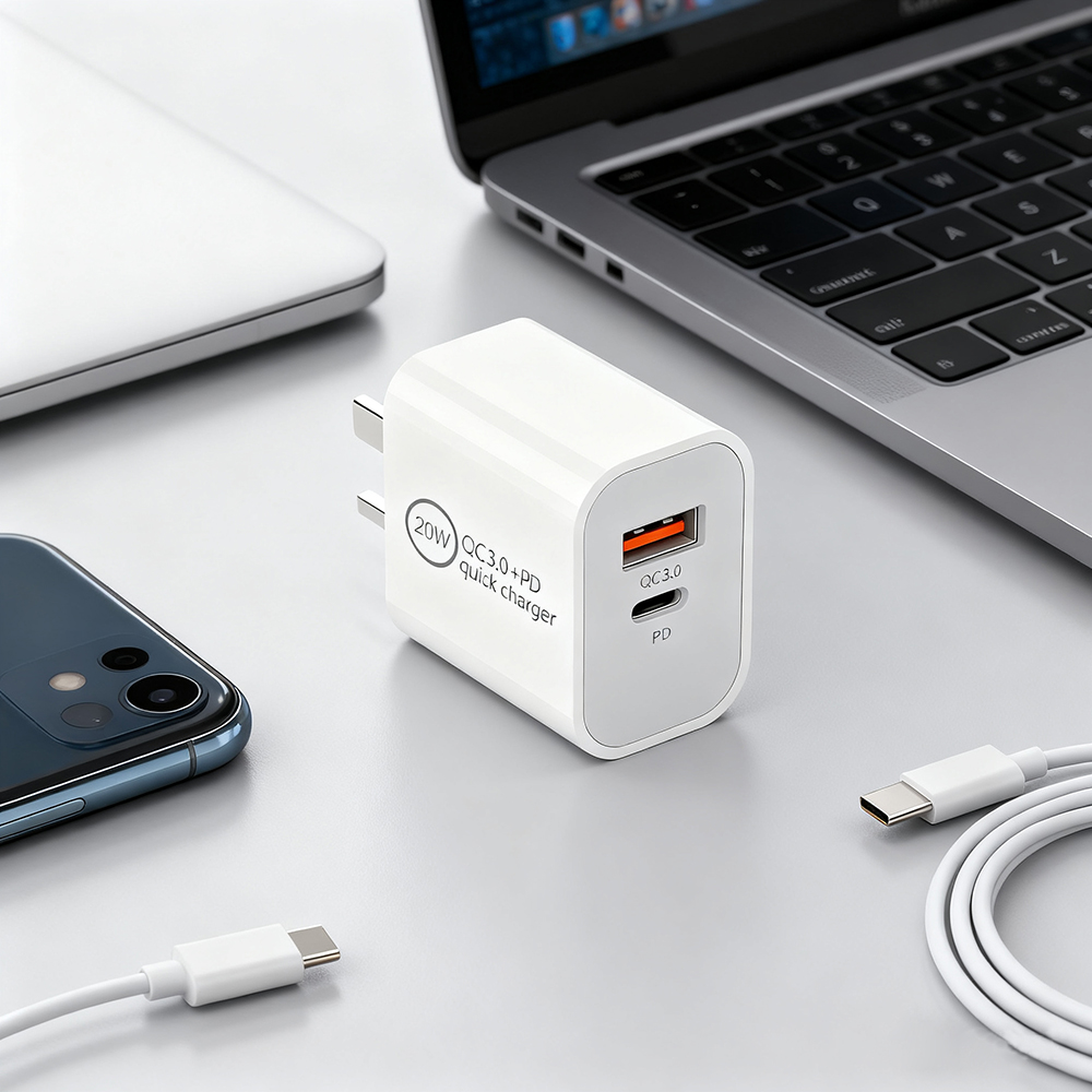 This high - performance charger is designed to meet US electrical specifications, making it perfectly compatible with power systems across the United States. It comes with two versatile output ports, namely a USB - A port and a USB - C (TYPE C) port, to cater to the charging needs of different devices.The USB - A port delivers a reliable output power of 18W, which is ideal for charging a wide range of devices such as smartphones, tablets, Bluetooth headphones, and portable speakers. It ensures a steady and efficient charging process, getting your devices powered up quickly so you can stay connected and productive.The USB - C (TYPE C) port, on the other hand, offers an even more powerful output of 20W. This port is specially designed for devices that support fast charging via USB - C, including the latest models of smartphones, tablets, and some laptops. With 20W of power, it significantly reduces charging time, allowing you to top up your devices in a short period, whether you're at home, in the office, or on the go. In addition to its excellent charging performance, this charger also offers a custom printing service. You can personalize the charger with your brand logo, company name, unique patterns, or any other design elements you desire. This not only adds a touch of individuality to the charger but also makes it a great promotional item for businesses, a memorable gift for friends and family, or a distinctive accessory for personal use.